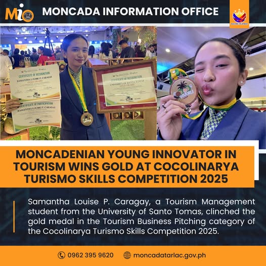 Samantha Louise P. Caragay, a Tourism Management student from the University of Santo Tomas, clinched the gold medal in the Tourism Business Pitching category of the Cocolinarya Turismo Skills Competition 2025.